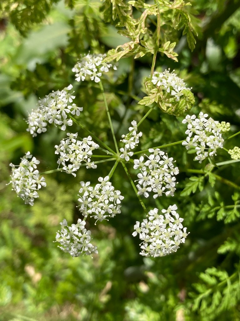 Well you live and learn. I was writing a post about how much I love the huge wild carrots in our garden, and that even tho Chris doesn’t doesn’t like them and wants them out, I love all sorts of things about them, and have even come to like their slightly strange smell! I looked up their slightly strange smell and then went down a bit of a wormhole it turns out that they are POSION HEMLOCK, not ridiculously healthy Queen Anne’s Lace after all! I should have worked it out because they are about 8 feet tall.