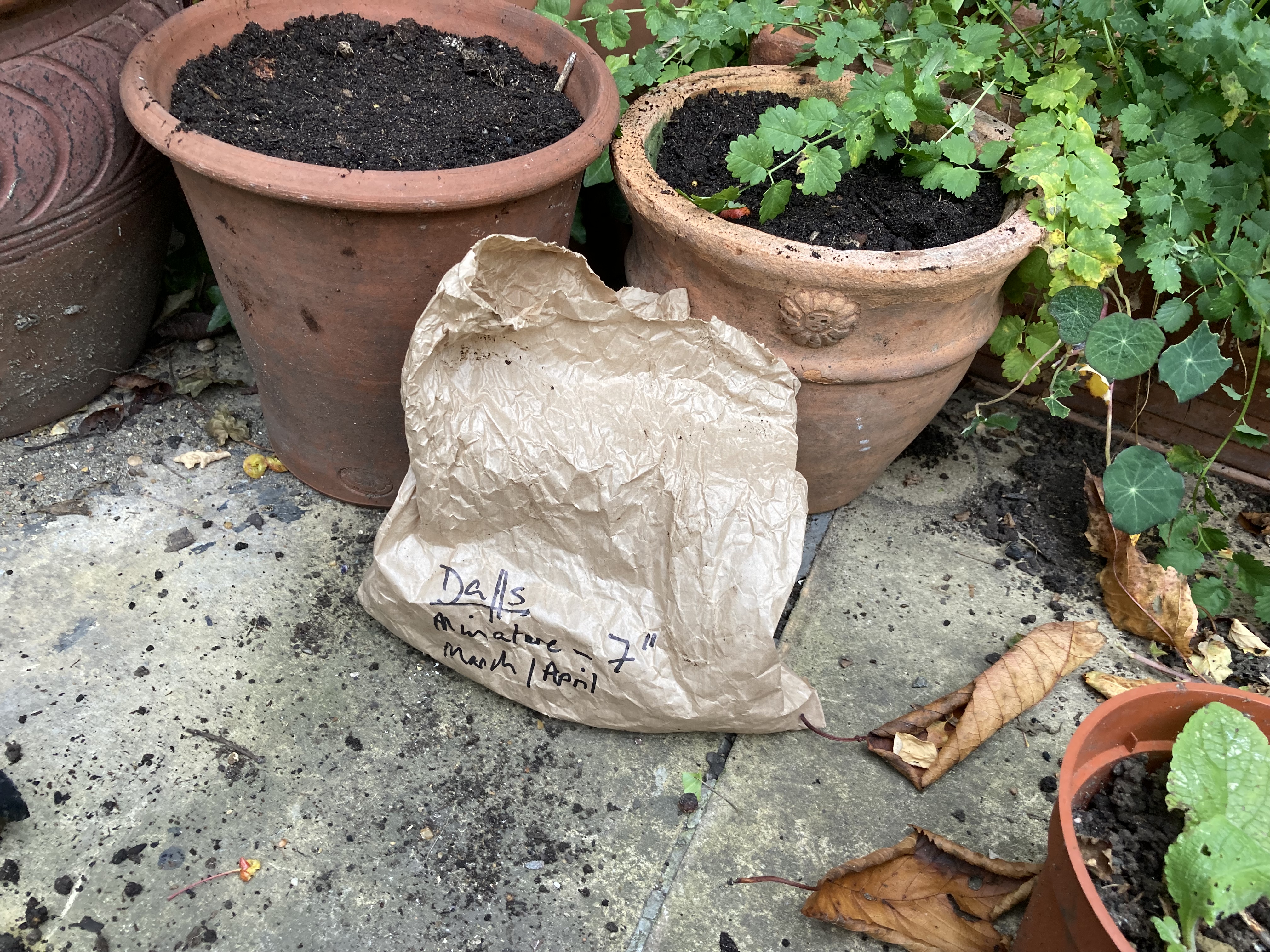 I’m not very good at planting bulbs – and they don’t seem to last. I thought you just put them in and they came up for ever but quite often I come across them and they’ve rotted. I do love tulips though – and who doesn’t like spring bulbs coming up. Today I planted a load of tulips I got from Sarah Raven and some mini daffs Amanda gave me