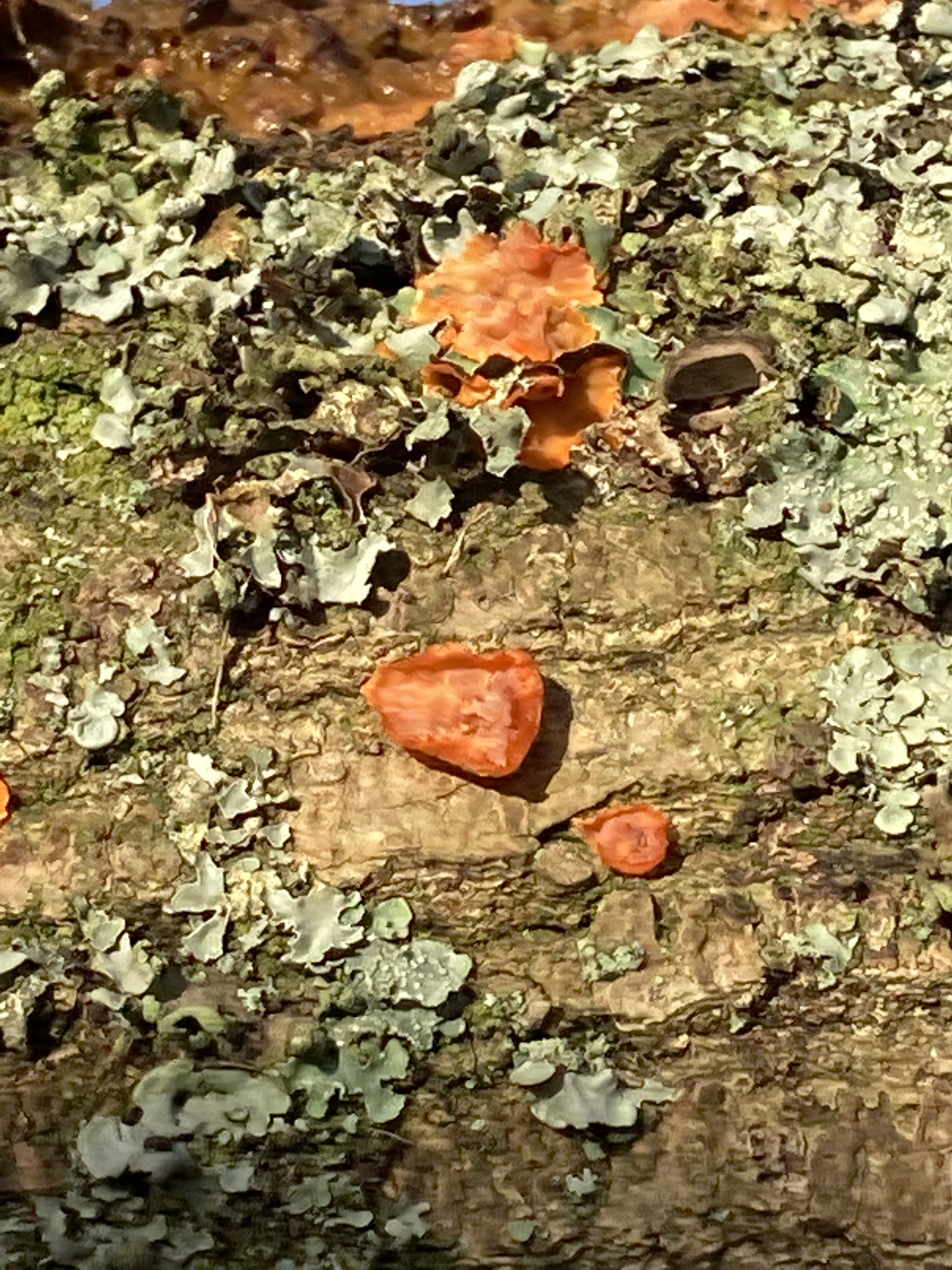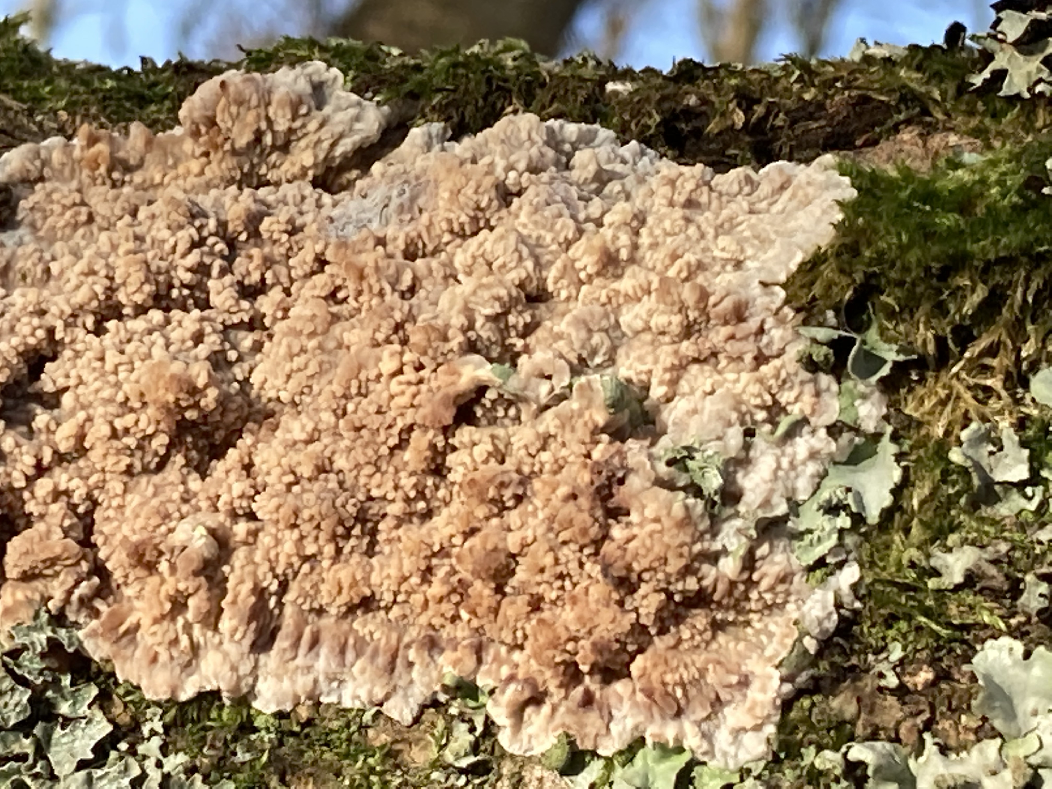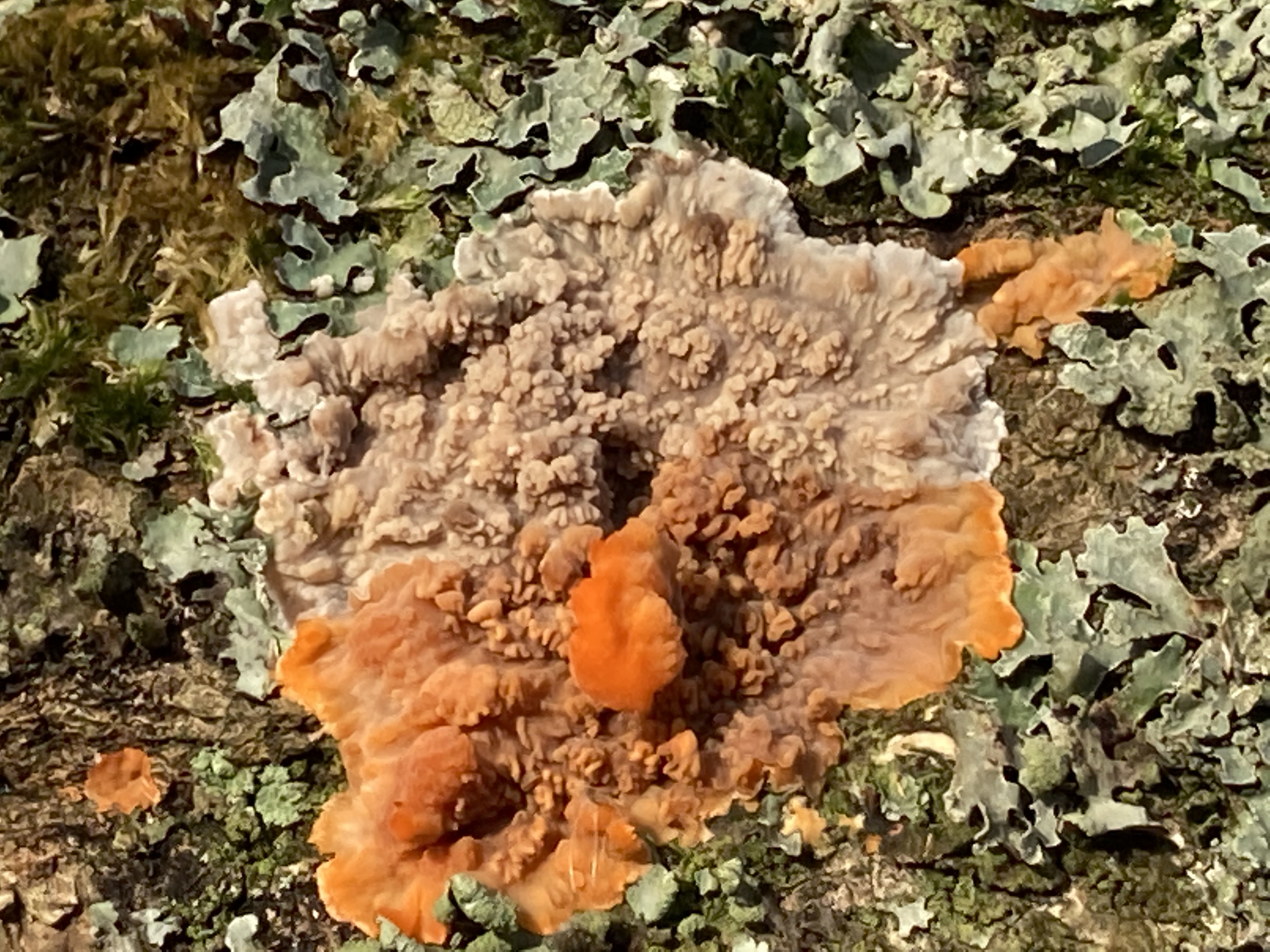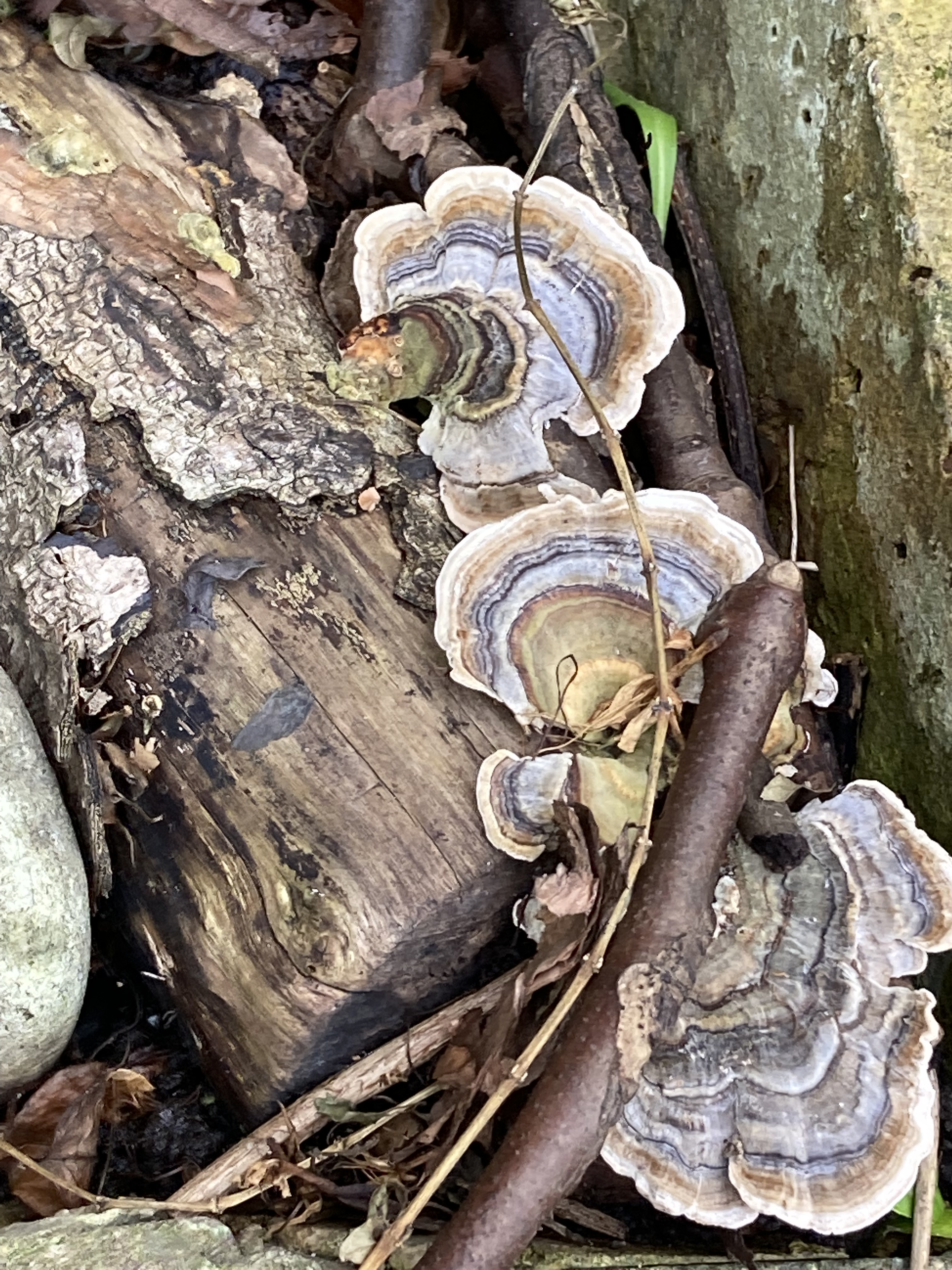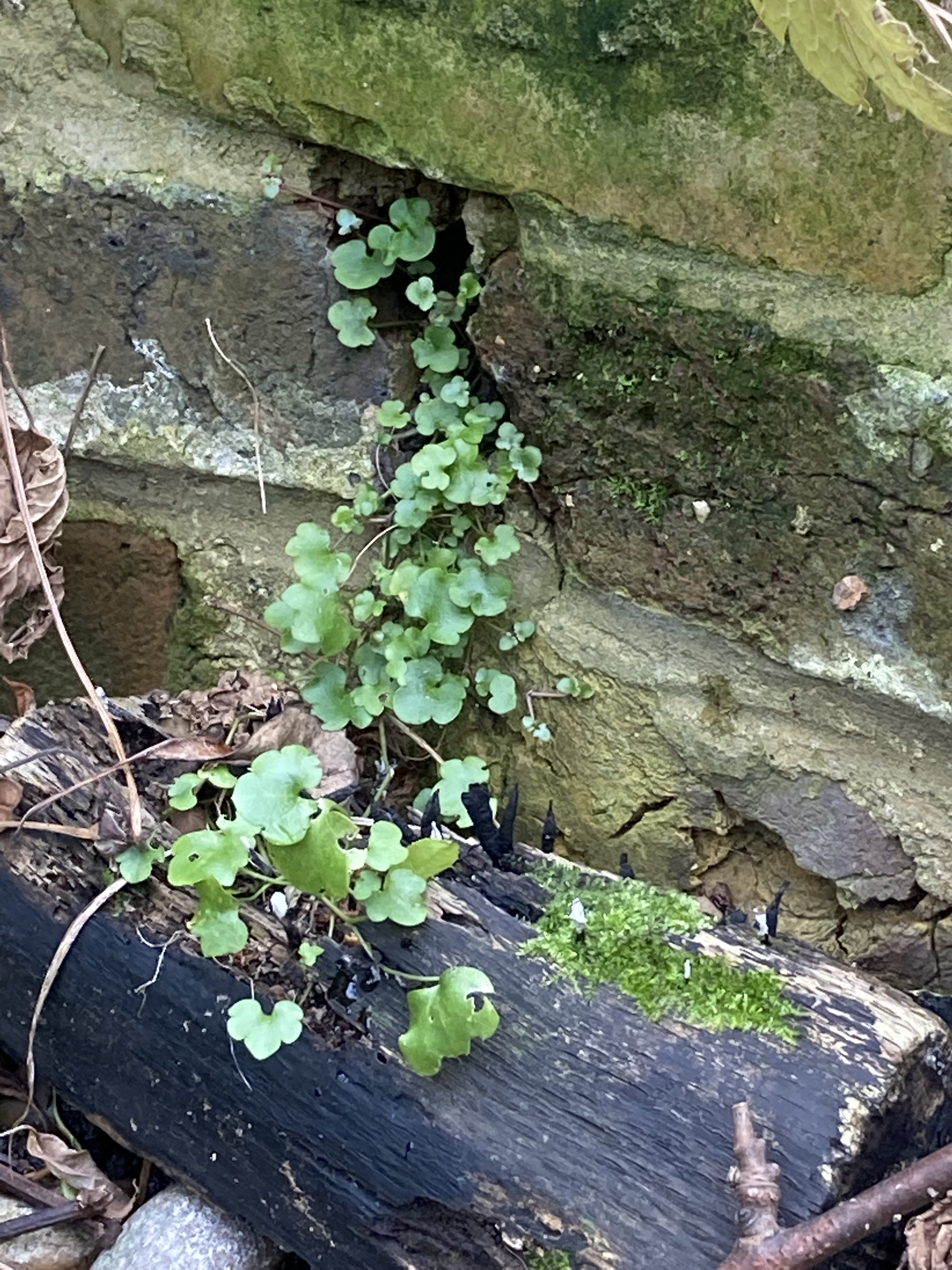 There are too many things flowering that shouldn’t be but here are 2 good things; toadflax (from Cawsand) growing out of a gap in the bricks by the pond and some VERY EXCITING fungi on on of the logs by the pond. If you try to move the stick, it is stuck in there.