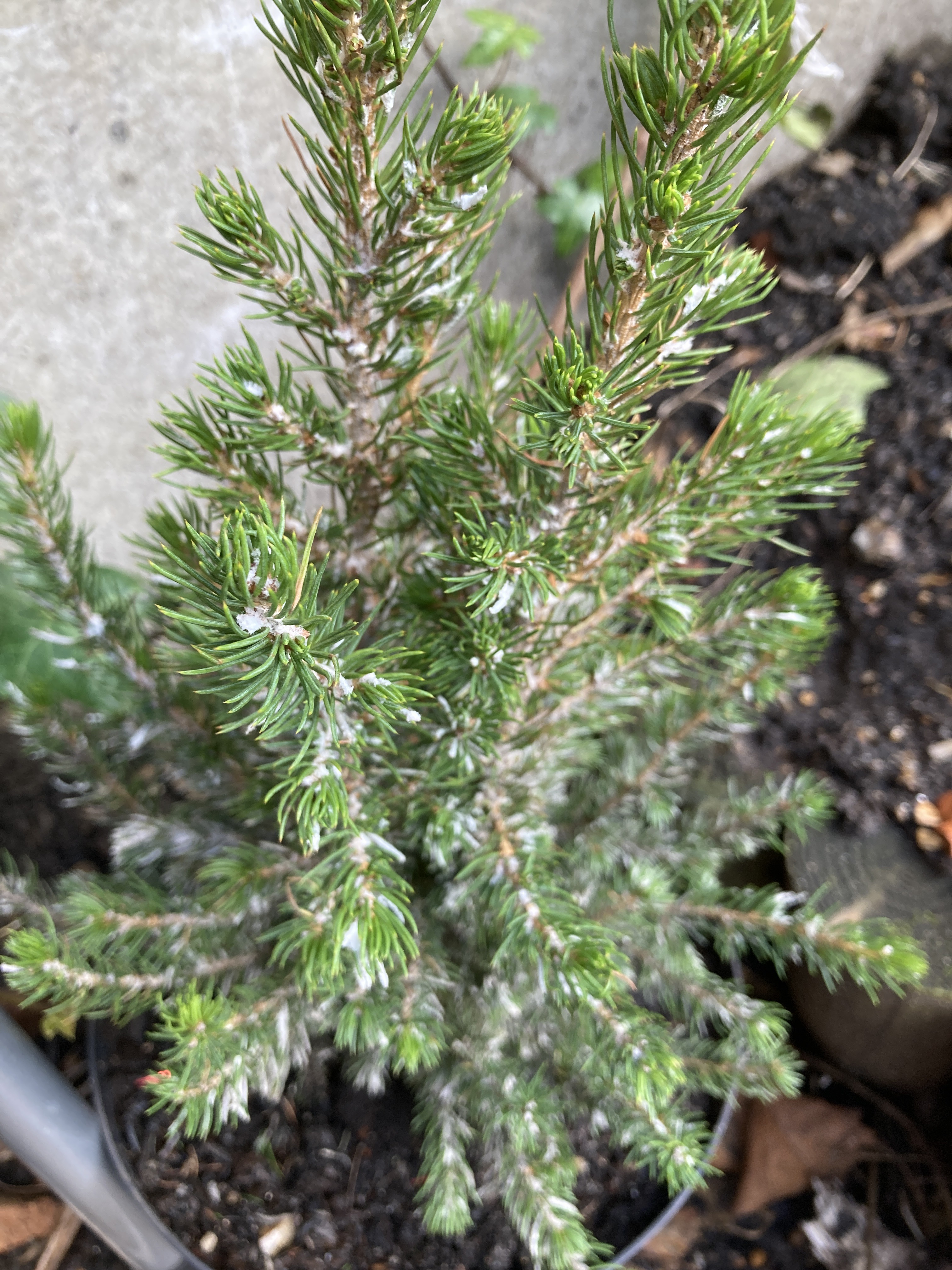 We got this from the food shop at Christmas when it became clear we couldn’t go and see A&A. Edie wanted a tree in her room. It’s about a foot high and the only one left was covered in plastic snow, which we are slowly picking off by hand.