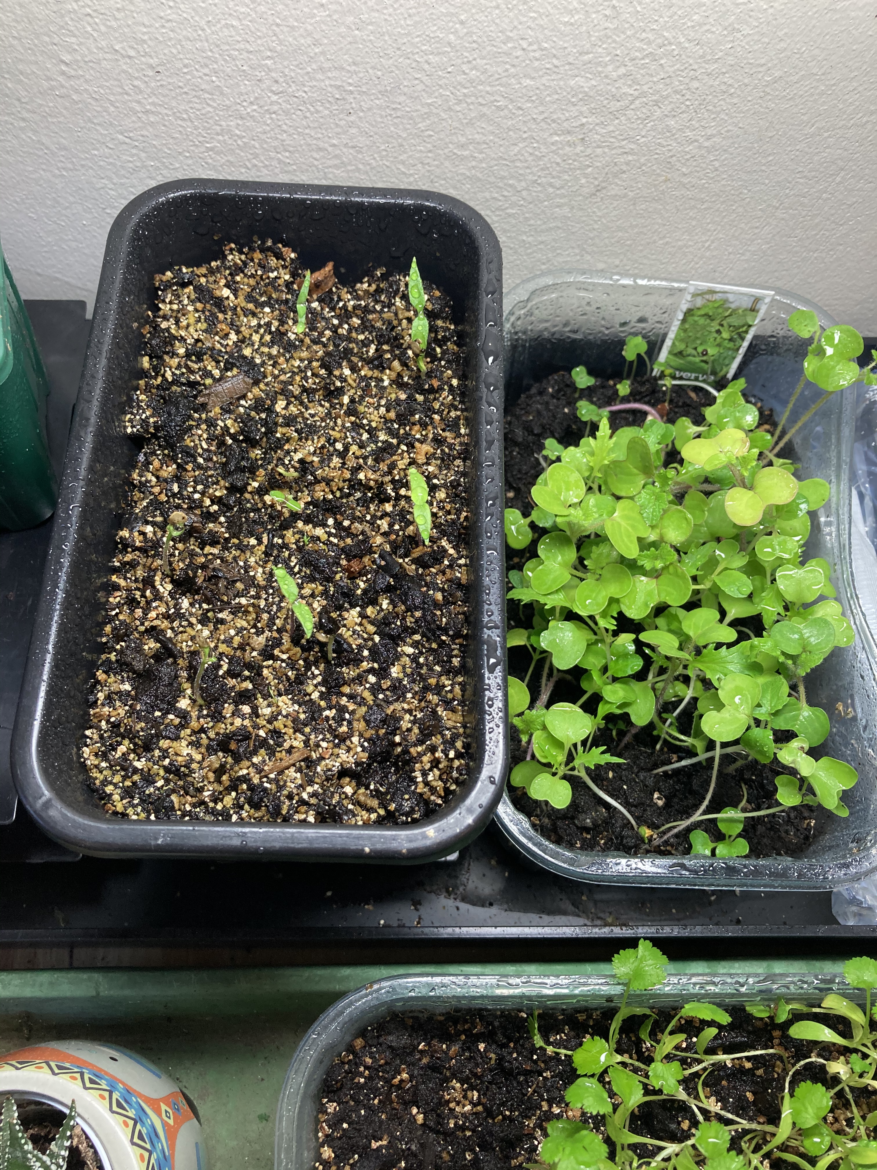 I had to move the all upstairs because the mice in the kitchen were eating them. I love how green and bright their leaves are and I guess the mice do too!