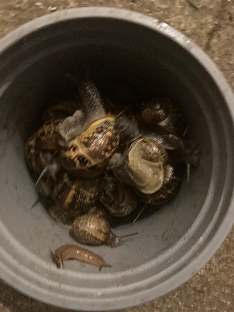 Veg: as predicted in I can’t grow veg, I can’t do that either. I have grown beans that we failed to eat and are now so huge and hard I am working out how to save them as dried beans (all 10 of them). I have a trombocino that … well who knows really? And some unappealing-looking Swiss Chard that I don’t want to eat either. I’ve got some pea sprouts that have gone all hairy.