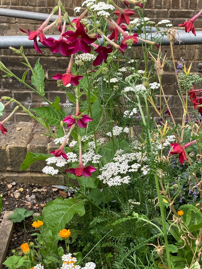 The scabious never did the business. The sunflowers got eaten! The nicotiana did really well in the Red Cross garden – not so well in ours. I think it needs lots of sun and to be planted out early.