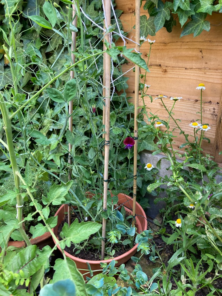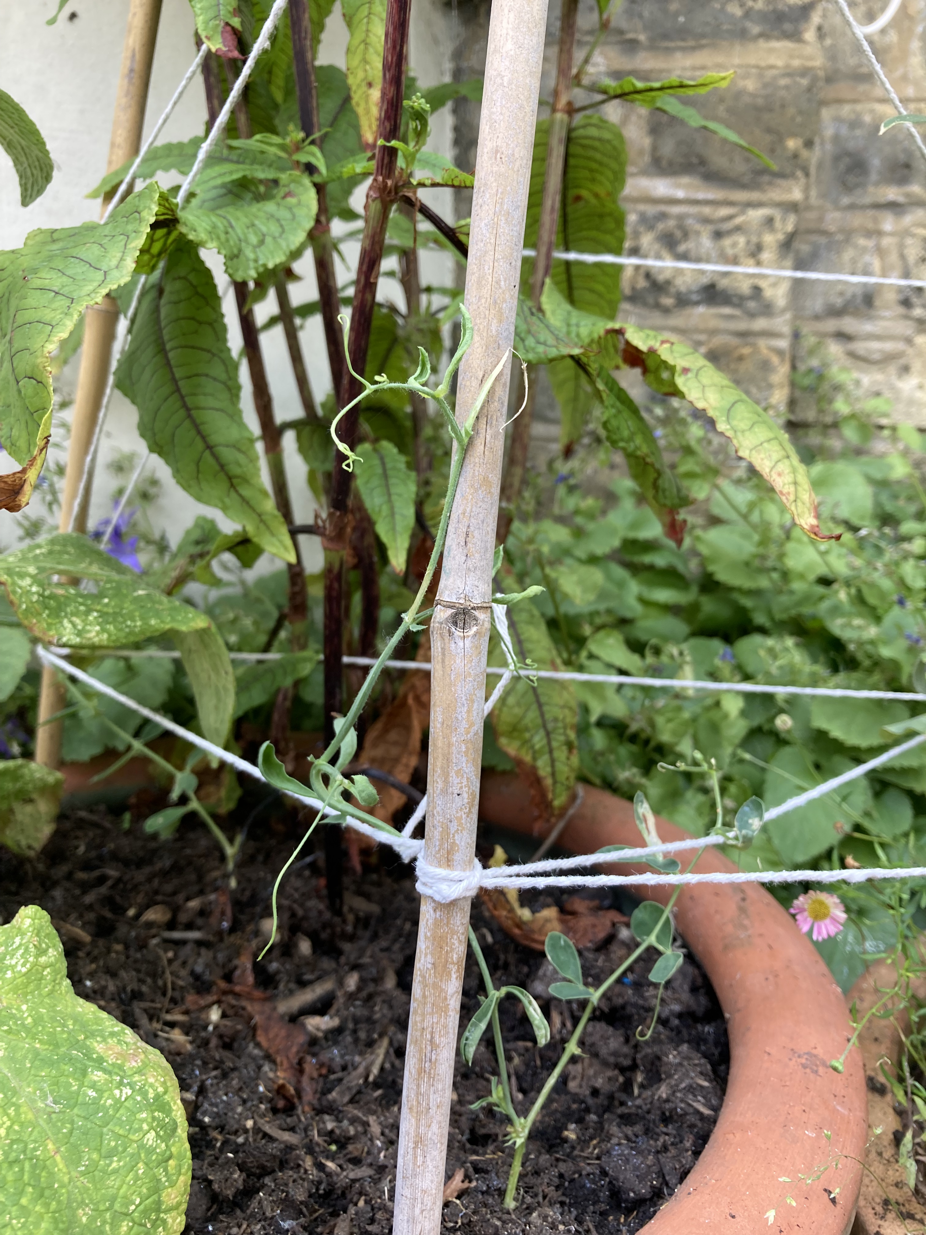 Some are spindly and weedy and totally failing to thrive. I don’t know why. I’ve fed and watered them. Some don’t get much sun (as they are so small – lots of sun higher up) but some do. The internet suggests it’s pretty hard to fail with sweet peas and has no ideas.